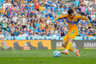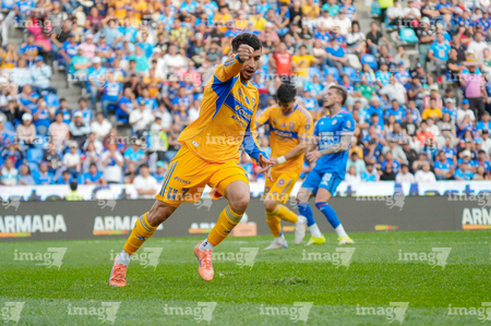 Puebla, Puebla, 15 de febrero de 2026. Rodrigo Aguirre, durante el partido correspondiente a la jornada 6 del torneo Clausura 2026 de la Liga BBVA MX, entre la Máquina Celeste del Cruz Azul y los Tigres de la UANL, realizado en el estadio Cuauhtémoc. Foto: Imago7/ Diego Padilla