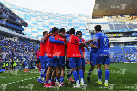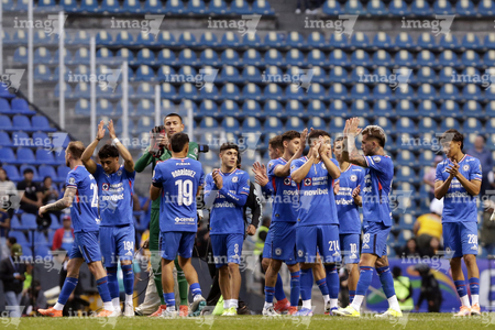 Puebla, Puebla, 15 de febrero de 2026. Jugadores de Cruz Azul, durante el partido correspondiente a la jornada 6 del torneo Clausura 2026 de la Liga BBVA MX, entre la Máquina Celeste del Cruz Azul y los Tigres de la UANL, realizado en el estadio Cuauhtémoc. Foto: Imago7/ Diego Padilla