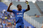 Puebla, Puebla, 15 de febrero de 2026. Christian Ebere durante el partido correspondiente a la jornada 6 del torneo Clausura 2026 de la Liga BBVA MX, entre la Máquina Celeste del Cruz Azul y los Tigres de la UANL, realizado en el estadio Cuauhtémoc. Foto: Imago7/Mireya Novo