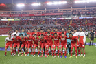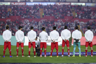 Aguascalientes, Aguascalientes, 21 de febrero de 2026. Jugadores del Toluca entonan el himno nacional mexicano, durante el partido correspondiente a la jornada 7 del torneo Clausura 2026 de la Liga BBVA MX, entre los Rayos del Necaxa y los Diablos Rojos del Toluca, realizado en el estadio Victoria. Foto: Imago7/ Rafael Vadillo