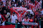 Aguascalientes, Aguascalientes, 21 de febrero de 2026. Afición, durante el partido correspondiente a la jornada 7 del torneo Clausura 2026 de la Liga BBVA MX, entre los Rayos del Necaxa y los Diablos Rojos del Toluca, realizado en el estadio Victoria. Foto: Imago7/ Pablo Ramírez