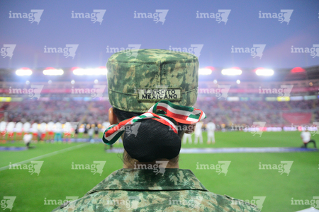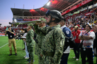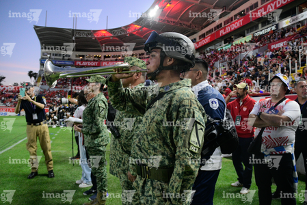 Aguascalientes, Aguascalientes, 21 de febrero de 2026. Elemento del Ejército, durante el partido correspondiente a la jornada 7 del torneo Clausura 2026 de la Liga BBVA MX, entre los Rayos del Necaxa y los Diablos Rojos del Toluca, realizado en el estadio Victoria. Foto: Imago7/ Pablo Ramírez