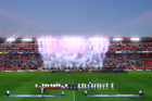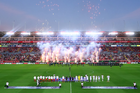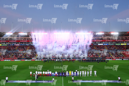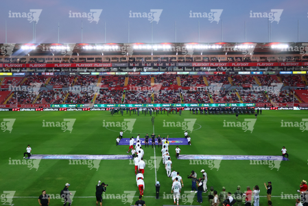 Aguascalientes, Aguascalientes, 21 de febrero de 2026. Protocolo, durante el partido correspondiente a la jornada 7 del torneo Clausura 2026 de la Liga BBVA MX, entre los Rayos del Necaxa y los Diablos Rojos del Toluca, realizado en el estadio Victoria. Foto: Imago7/ Pablo Ramírez