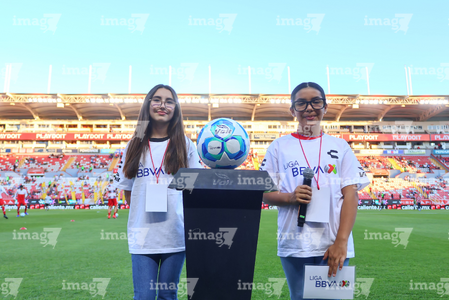 Aguascalientes, Aguascalientes, 21 de febrero de 2026. Protocolo, durante el partido correspondiente a la jornada 7 del torneo Clausura 2026 de la Liga BBVA MX, entre los Rayos del Necaxa y los Diablos Rojos del Toluca, realizado en el estadio Victoria. Foto: Imago7/ Rogelio Davila