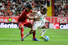 Aguascalientes, Aguascalientes, 21 de febrero de 2026. Paulinho (C), durante el partido correspondiente a la jornada 7 del torneo Clausura 2026 de la Liga BBVA MX, entre los Rayos del Necaxa y los Diablos Rojos del Toluca, realizado en el estadio Victoria. Foto: Imago7/ Rafael Vadillo