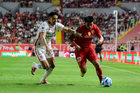 Aguascalientes, Aguascalientes, 21 de febrero de 2026. Cristian Calderón "Chicote" y Paulinho, durante el partido correspondiente a la jornada 7 del torneo Clausura 2026 de la Liga BBVA MX, entre los Rayos del Necaxa y los Diablos Rojos del Toluca, realizado en el estadio Victoria. Foto: Imago7/ Pablo Ramírez