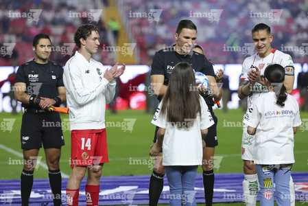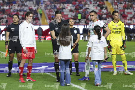 Aguascalientes, Aguascalientes, 21 de febrero de 2026. Protocolo, durante el partido correspondiente a la jornada 7 del torneo Clausura 2026 de la Liga BBVA MX, entre los Rayos del Necaxa y los Diablos Rojos del Toluca, realizado en el estadio Victoria. Foto: Imago7/ Rafael Vadillo