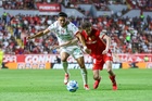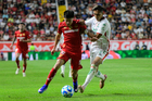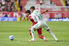 Aguascalientes, Aguascalientes, 21 de febrero de 2026. Pavel Pérez (I), durante el partido correspondiente a la jornada 7 del torneo Clausura 2026 de la Liga BBVA MX, entre los Rayos del Necaxa y los Diablos Rojos del Toluca, realizado en el estadio Victoria. Foto: Imago7/ Pablo Ramírez