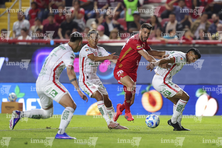 Aguascalientes, Aguascalientes, 21 de febrero de 2026. Daniel Leyva, Ricardo Monreal, Lorenzo Faravelli y Cristian Calderón "Chicote", durante el partido correspondiente a la jornada 7 del torneo Clausura 2026 de la Liga BBVA MX, entre los Rayos del Necaxa y los Diablos Rojos del Toluca, realizado en el estadio Victoria. Foto: Imago7/ Rogelio Davila