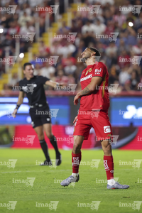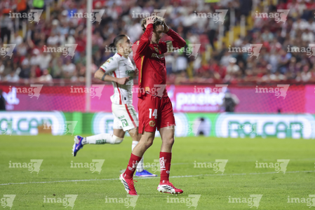 Aguascalientes, Aguascalientes, 21 de febrero de 2026. Federico Pereira en lamento, durante el partido correspondiente a la jornada 7 del torneo Clausura 2026 de la Liga BBVA MX, entre los Rayos del Necaxa y los Diablos Rojos del Toluca, realizado en el estadio Victoria. Foto: Imago7/ Rafael Vadillo
