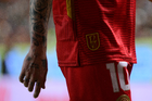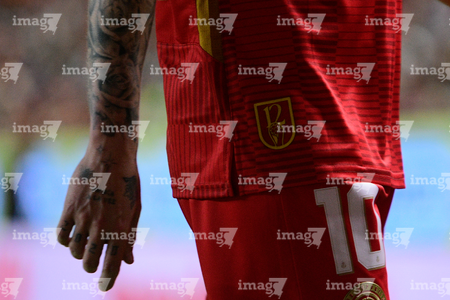 Aguascalientes, Aguascalientes, 21 de febrero de 2026. Parche por los 12 títulos del Toluca, durante el partido correspondiente a la jornada 7 del torneo Clausura 2026 de la Liga BBVA MX, entre los Rayos del Necaxa y los Diablos Rojos del Toluca, realizado en el estadio Victoria. Foto: Imago7/ Pablo Ramírez