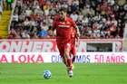 Aguascalientes, Aguascalientes, 21 de febrero de 2026. Lorenzo Faravelli, durante el partido correspondiente a la jornada 7 del torneo Clausura 2026 de la Liga BBVA MX, entre los Rayos del Necaxa y los Diablos Rojos del Toluca, realizado en el estadio Victoria. Foto: Imago7/ Pablo Ramírez