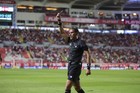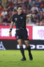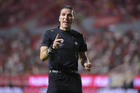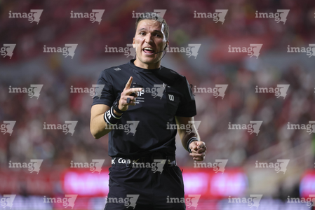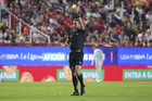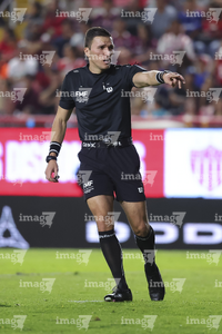 Aguascalientes, Aguascalientes, 21 de febrero de 2026. Yonatan Peinado Aguirre, árbitro central, durante el partido correspondiente a la jornada 7 del torneo Clausura 2026 de la Liga BBVA MX, entre los Rayos del Necaxa y los Diablos Rojos del Toluca, realizado en el estadio Victoria. Foto: Imago7/ Rafael Vadillo
