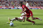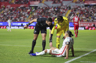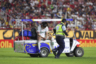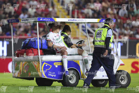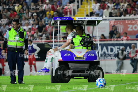Aguascalientes, Aguascalientes, 21 de febrero de 2026. Paulinho resultó lesionado, durante el partido correspondiente a la jornada 7 del torneo Clausura 2026 de la Liga BBVA MX, entre los Rayos del Necaxa y los Diablos Rojos del Toluca, realizado en el estadio Victoria. Foto: Imago7/ Pablo Ramírez