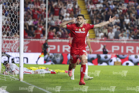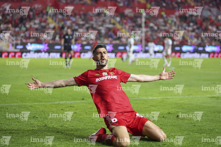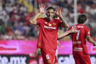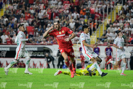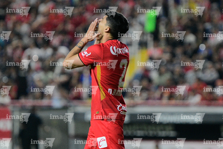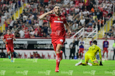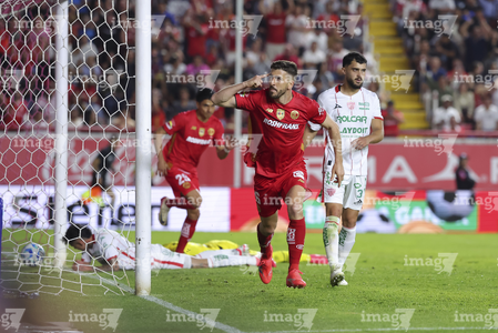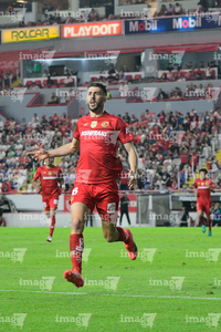 Aguascalientes, Aguascalientes, 21 de febrero de 2026. Federico Pereira en festejo de gol, durante el partido correspondiente a la jornada 7 del torneo Clausura 2026 de la Liga BBVA MX, entre los Rayos del Necaxa y los Diablos Rojos del Toluca, realizado en el estadio Victoria. Foto: Imago7/ Rafael Vadillo