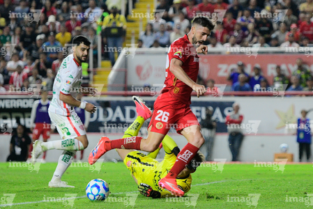Aguascalientes, Aguascalientes, 21 de febrero de 2026. Portigoles, durante el partido correspondiente a la jornada 7 del torneo Clausura 2026 de la Liga BBVA MX, entre los Rayos del Necaxa y los Diablos Rojos del Toluca, realizado en el estadio Victoria. Foto: Imago7/ Rafael Vadillo