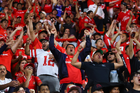 Aguascalientes, Aguascalientes, 21 de febrero de 2026. Afición, durante el partido correspondiente a la jornada 7 del torneo Clausura 2026 de la Liga BBVA MX, entre los Rayos del Necaxa y los Diablos Rojos del Toluca, realizado en el estadio Victoria. Foto: Imago7/ Rafael Vadillo