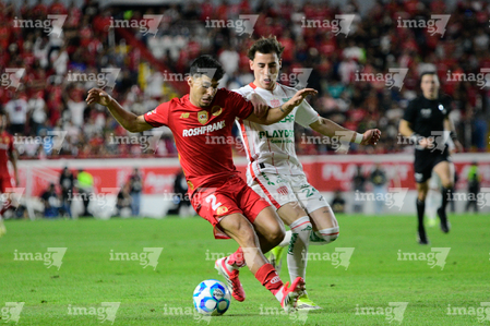 Aguascalientes, Aguascalientes, 21 de febrero de 2026. Tomas Badaloni y Pavel Pérez, durante el partido correspondiente a la jornada 7 del torneo Clausura 2026 de la Liga BBVA MX, entre los Rayos del Necaxa y los Diablos Rojos del Toluca, realizado en el estadio Victoria. Foto: Imago7/ Pablo Ramírez