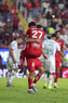 Aguascalientes, Aguascalientes, 21 de febrero de 2026. Jesús Angulo "Canelo" y Paulinho, durante el partido correspondiente a la jornada 7 del torneo Clausura 2026 de la Liga BBVA MX, entre los Rayos del Necaxa y los Diablos Rojos del Toluca, realizado en el estadio Victoria. Foto: Imago7/ Rafael Vadillo