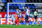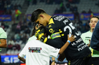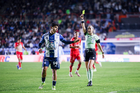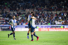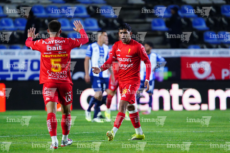 Pachuca, Hidalgo, 3 de marzo de 2026. Alexei Domínguez y Robert Kenedy en festejo de gol, durante el partido correspondiente a la jornada 9 del torneo Clausura 2026 de la Liga BBVA MX, entre los Tuzos del Pachuca y los Rayos del Necaxa, realizado en el estadio Hidalgo. Foto: Imago7/ Elizabeth Hernández