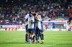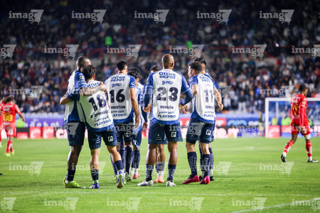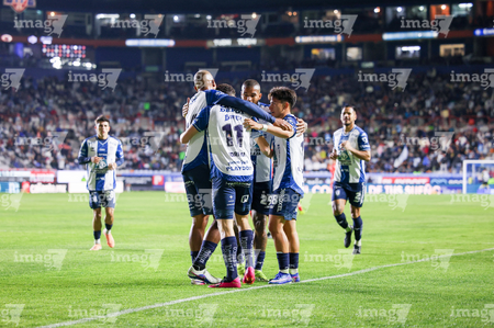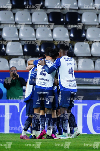 Pachuca, Hidalgo, 3 de marzo de 2026. Jugadores de Pachuca en festejo de gol, durante el partido correspondiente a la jornada 9 del torneo Clausura 2026 de la Liga BBVA MX, entre los Tuzos del Pachuca y los Rayos del Necaxa, realizado en el estadio Hidalgo. Foto: Imago7/ Elizabeth Hernández