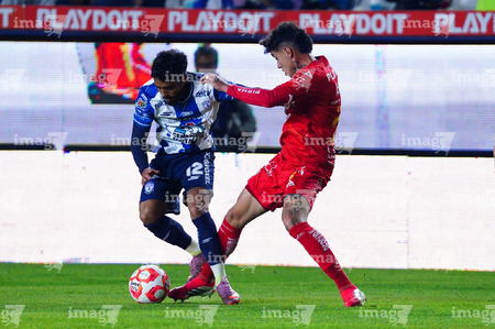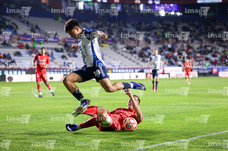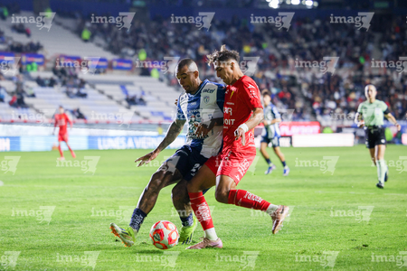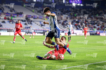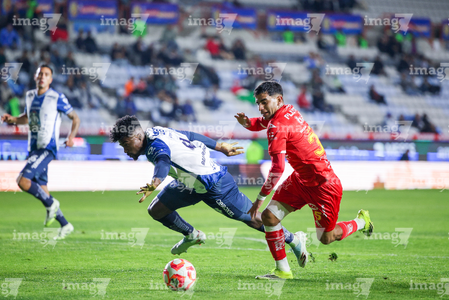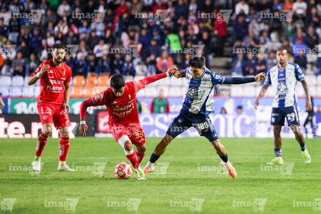 Pachuca, Hidalgo, 3 de marzo de 2026. Israel Tello y Christian Rivera, durante el partido correspondiente a la jornada 9 del torneo Clausura 2026 de la Liga BBVA MX, entre los Tuzos del Pachuca y los Rayos del Necaxa, realizado en el estadio Hidalgo. Foto: Imago7/ Jacqueline Pedraza