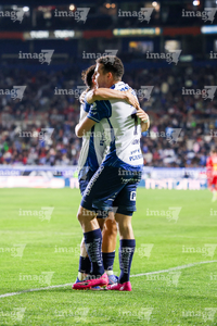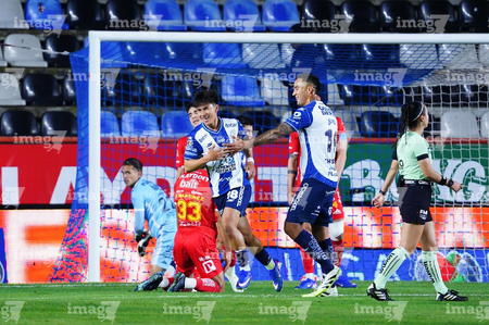 Pachuca, Hidalgo, 3 de marzo de 2026. Kevin Gutiérrez y Javier Ruiz en festejo de gol, durante el partido correspondiente a la jornada 9 del torneo Clausura 2026 de la Liga BBVA MX, entre los Tuzos del Pachuca y los Rayos del Necaxa, realizado en el estadio Hidalgo. Foto: Imago7/ Jacqueline Pedraza