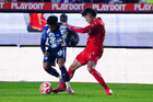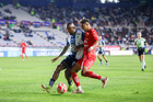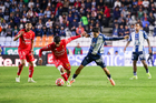Pachuca, Hidalgo, 3 de marzo de 2026. Robert Kenedy y Tomas Badaloni, durante el partido correspondiente a la jornada 9 del torneo Clausura 2026 de la Liga BBVA MX, entre los Tuzos del Pachuca y los Rayos del Necaxa, realizado en el estadio Hidalgo. Foto: Imago7/ Elizabeth Hernández