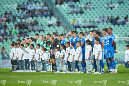 Torreón, Coahuila, 3 de marzo de 2026. Protocolo, durante el partido correspondiente a la jornada 9 del torneo Clausura 2026 de la Liga BBVA MX, entre los Guerreros de Santos Laguna y la Máquina Celeste del Cruz Azul, realizado en el estadio Corona. Foto: Imago7/ Saul Perales