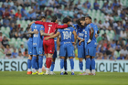 Torreón, Coahuila, 3 de marzo de 2026. Jugadores de Cruz Azul, durante el partido correspondiente a la jornada 9 del torneo Clausura 2026 de la Liga BBVA MX, entre los Guerreros de Santos Laguna y la Máquina Celeste del Cruz Azul, realizado en el estadio Corona. Foto: Imago7/ Saul Perales