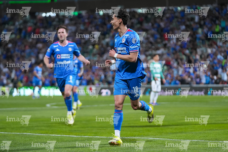 Torreón, Coahuila, 3 de marzo de 2026. Ezequiel Bullaude en festejo de gol, durante el partido correspondiente a la jornada 9 del torneo Clausura 2026 de la Liga BBVA MX, entre los Guerreros de Santos Laguna y la Máquina Celeste del Cruz Azul, realizado en el estadio Corona. Foto: Imago7/ Erick Saavedra