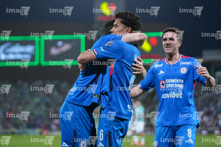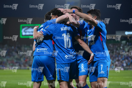 Torreón, Coahuila, 3 de marzo de 2026. Jugadores de Cruz Azul en festejo de gol, durante el partido correspondiente a la jornada 9 del torneo Clausura 2026 de la Liga BBVA MX, entre los Guerreros de Santos Laguna y la Máquina Celeste del Cruz Azul, realizado en el estadio Corona. Foto: Imago7/ Erick Saavedra
