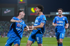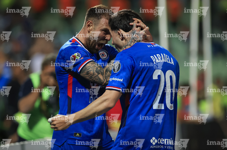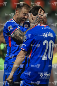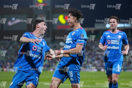 Torreón, Coahuila, 3 de marzo de 2026. Rodolfo Rotondi y José Paradela en festejo de gol, durante el partido correspondiente a la jornada 9 del torneo Clausura 2026 de la Liga BBVA MX, entre los Guerreros de Santos Laguna y la Máquina Celeste del Cruz Azul, realizado en el estadio Corona. Foto: Imago7/ Saul Perales