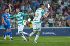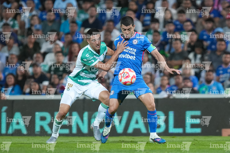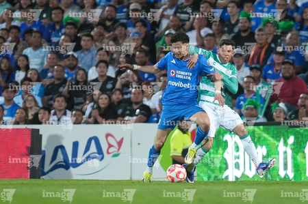 Torreón, Coahuila, 3 de marzo de 2026. Bruno Amione y José Paradela, durante el partido correspondiente a la jornada 9 del torneo Clausura 2026 de la Liga BBVA MX, entre los Guerreros de Santos Laguna y la Máquina Celeste del Cruz Azul, realizado en el estadio Corona. Foto: Imago7/ Saul Perales