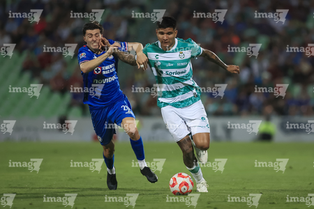 Torreón, Coahuila, 3 de marzo de 2026. Agustín Palavecino y Kevin Palacios durante el partido correspondiente a la jornada 9 del torneo Clausura 2026 de la Liga BBVA MX, entre los Guerreros de Santos Laguna y la Máquina Celeste del Cruz Azul, realizado en el estadio Corona. Foto: Imago7/ Erick Saavedra