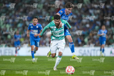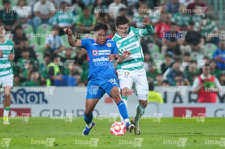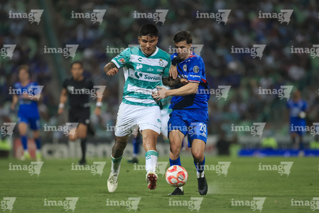 Torreón, Coahuila, 3 de marzo de 2026. Jeremy Márquez y Javier Güemez, durante el partido correspondiente a la jornada 9 del torneo Clausura 2026 de la Liga BBVA MX, entre los Guerreros de Santos Laguna y la Máquina Celeste del Cruz Azul, realizado en el estadio Corona. Foto: Imago7/ Erick Saavedra