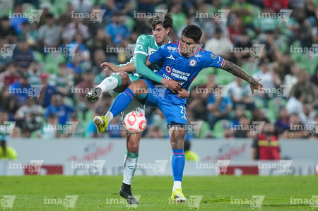 Torreón, Coahuila, 3 de marzo de 2026. Ezequiel Bullaude y Nicolás Ibáñez, durante el partido correspondiente a la jornada 9 del torneo Clausura 2026 de la Liga BBVA MX, entre los Guerreros de Santos Laguna y la Máquina Celeste del Cruz Azul, realizado en el estadio Corona. Foto: Imago7/ Erick Saavedra