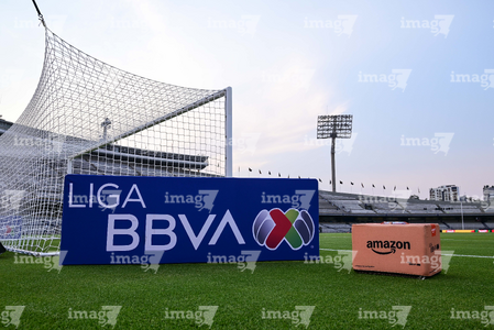 Ciudad de México, 3 de marzo de 2026. Portigoles y caja de Amazon, durante el partido correspondiente a la jornada 9 del torneo Clausura 2026 de la Liga BBVA MX, entre los Pumas de la UNAM y los Diablos Rojos del Toluca, realizado en el estadio Olímpico Universitario. Foto: Imago7/ Alexis Chavez