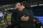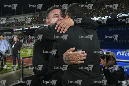 Ciudad de México, 3 de marzo de 2026. Antonio Mohamed "Turco" y Efraín Júarez, Directores Tecnicos, durante el partido correspondiente a la jornada 9 del torneo Clausura 2026 de la Liga BBVA MX, entre los Pumas de la UNAM y los Diablos Rojos del Toluca, realizado en el estadio Olímpico Universitario. Foto: Imago7/ Manlio Contreras