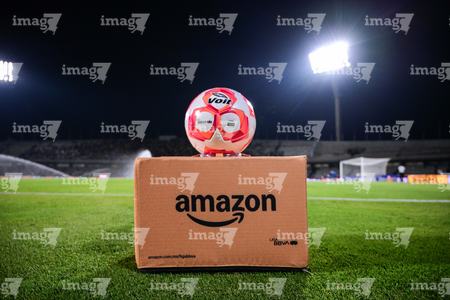Ciudad de México, 3 de marzo de 2026. Balón de futbol Voit Aereus sobre caja de Amazon, durante el partido correspondiente a la jornada 9 del torneo Clausura 2026 de la Liga BBVA MX, entre los Pumas de la UNAM y los Diablos Rojos del Toluca, realizado en el estadio Olímpico Universitario. Foto: Imago7/ Alexis Chavez
