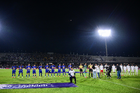 Ciudad de México, 3 de marzo de 2026. Protocolo, durante el partido correspondiente a la jornada 9 del torneo Clausura 2026 de la Liga BBVA MX, entre los Pumas de la UNAM y los Diablos Rojos del Toluca, realizado en el estadio Olímpico Universitario. Foto: Imago7/ Alexis Chavez