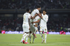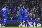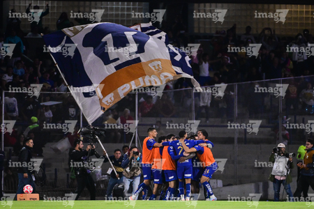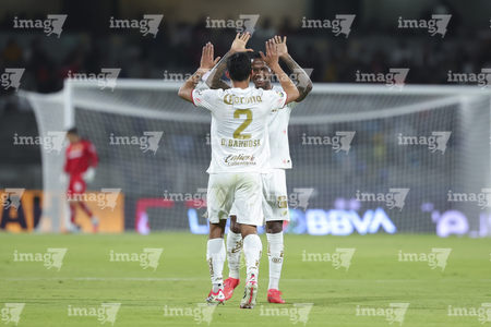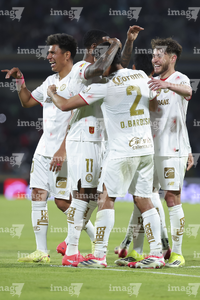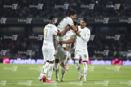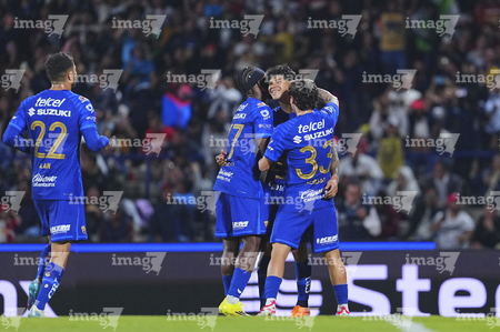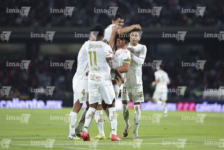 Ciudad de México, 3 de marzo de 2026. Jugadores de Pumas en festejo de gol, durante el partido correspondiente a la jornada 9 del torneo Clausura 2026 de la Liga BBVA MX, entre los Pumas de la UNAM y los Diablos Rojos del Toluca, realizado en el estadio Olímpico Universitario. Foto: Imago7/ Alexis Chavez