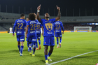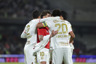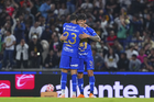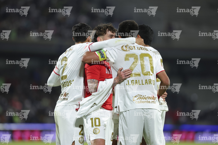 Ciudad de México, 3 de marzo de 2026. Jugadores del Toluca en festejo de gol, durante el partido correspondiente a la jornada 9 del torneo Clausura 2026 de la Liga BBVA MX, entre los Pumas de la UNAM y los Diablos Rojos del Toluca, realizado en el estadio Olímpico Universitario. Foto: Imago7/ Rafael Vadillo