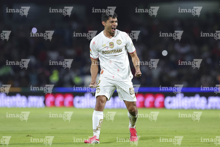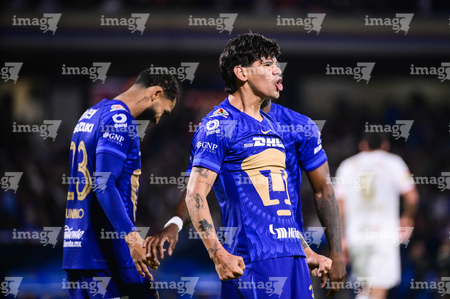 Ciudad de México, 3 de marzo de 2026. Jesús Angulo "Canelo" en festejo de gol, durante el partido correspondiente a la jornada 9 del torneo Clausura 2026 de la Liga BBVA MX, entre los Pumas de la UNAM y los Diablos Rojos del Toluca, realizado en el estadio Olímpico Universitario. Foto: Imago7/ Rafael Vadillo