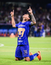 Ciudad de México, 3 de marzo de 2026. Jesús Gallardo en festejo, durante el partido correspondiente a la jornada 9 del torneo Clausura 2026 de la Liga BBVA MX, entre los Pumas de la UNAM y los Diablos Rojos del Toluca, realizado en el estadio Olímpico Universitario. Foto: Imago7/ Alexis Chavez