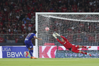 Ciudad de México, 3 de marzo de 2026. Robert Morales anota gol de penal a Hugo González, durante el partido correspondiente a la jornada 9 del torneo Clausura 2026 de la Liga BBVA MX, entre los Pumas de la UNAM y los Diablos Rojos del Toluca, realizado en el estadio Olímpico Universitario. Foto: Imago7/ Rafael Vadillo