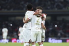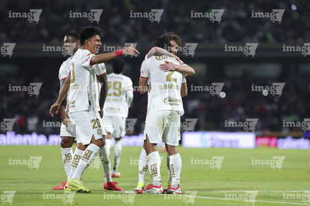 Ciudad de México, 3 de marzo de 2026. Luan Garcia y Federico Pereira en festejo, durante el partido correspondiente a la jornada 9 del torneo Clausura 2026 de la Liga BBVA MX, entre los Pumas de la UNAM y los Diablos Rojos del Toluca, realizado en el estadio Olímpico Universitario. Foto: Imago7/ Rafael Vadillo