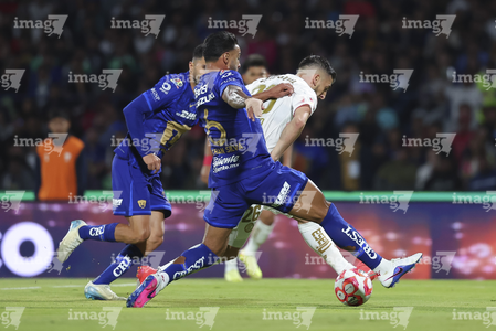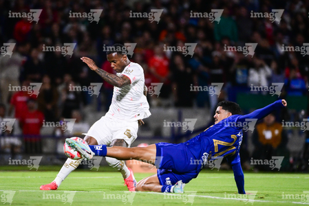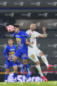 Ciudad de México, 3 de marzo de 2026. Cesar Garza y Paulinho, durante el partido correspondiente a la jornada 9 del torneo Clausura 2026 de la Liga BBVA MX, entre los Pumas de la UNAM y los Diablos Rojos del Toluca, realizado en el estadio Olímpico Universitario. Foto: Imago7/ Manlio Contreras