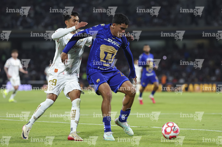 Ciudad de México, 3 de marzo de 2026. Alan Medina y Jesús Gallardo, durante el partido correspondiente a la jornada 9 del torneo Clausura 2026 de la Liga BBVA MX, entre los Pumas de la UNAM y los Diablos Rojos del Toluca, realizado en el estadio Olímpico Universitario. Foto: Imago7/ Manlio Contreras