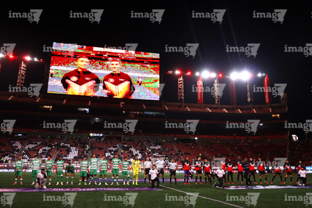 Tijuana, Baja California, 8 de marzo de 2026. Protocolo, durante el partido correspondiente a la jornada 10 del torneo Clausura 2026 de la Liga BBVA MX, entre los Xolos de Tijuana y los Guerreros de Santos Laguna, realizado en el estadio Caliente. Foto: Imago7/ David Vega
